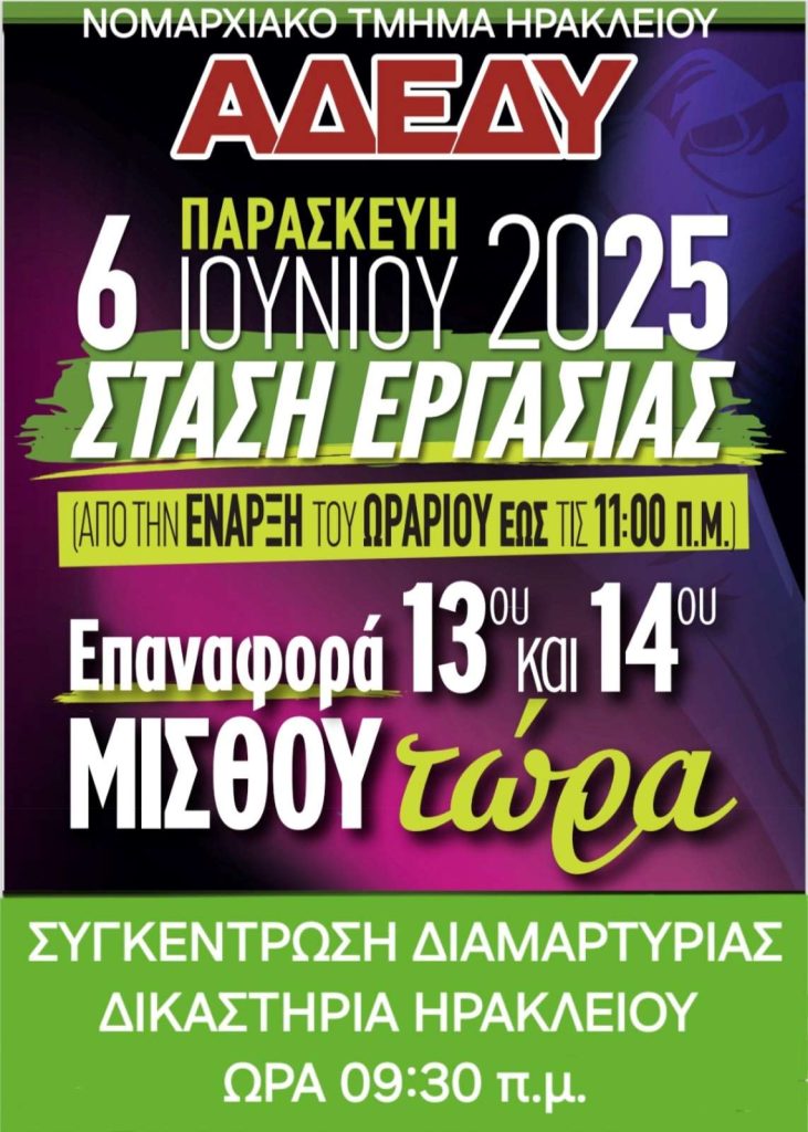 Για το Ηράκλειο η συγκέντρωση είναι μπροστά από τα δικαστήρια στις 9:30.