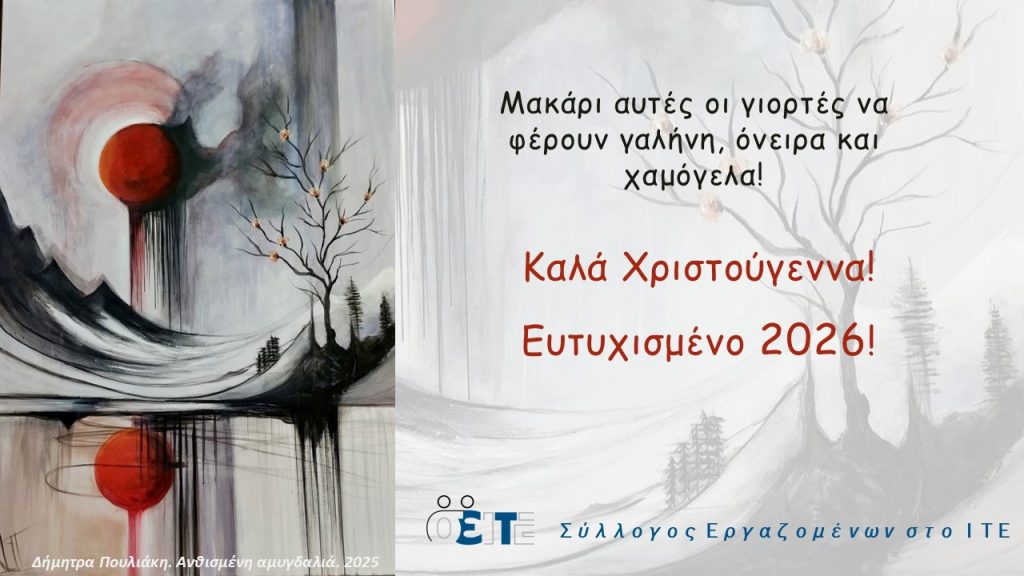 Το Διοικητικό Συμβούλιο του Συλλόγου Εργαζομένων στο ΙΤΕ (ΣΕΙΤΕ) σας ευχαριστεί θερμά για τη μεγάλη ανταπόκριση και την παρουσία σας στη χριστουγεννιάτικη εκδήλωση για τα παιδιά των εργαζομένων στο ΙΤΕ, η οποία πραγματοποιήθηκε την Πέμπτη 18 Δεκεμβρίου 2025, στο κεντρικό κτήριο του ΙΤΕ στο Ηράκλειο.